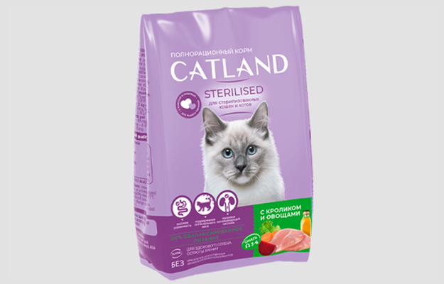 Сухой полнорационный корм «Catland» для стерилизованных кошек и котов разработан по современной особой технологии с учетом потребностей животного, которое перенесло операцию.