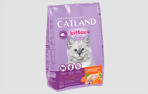 Сухой полнорационный корм «Catland для котят» предназначен для ежедневного кормления котят до 12 месяцев.