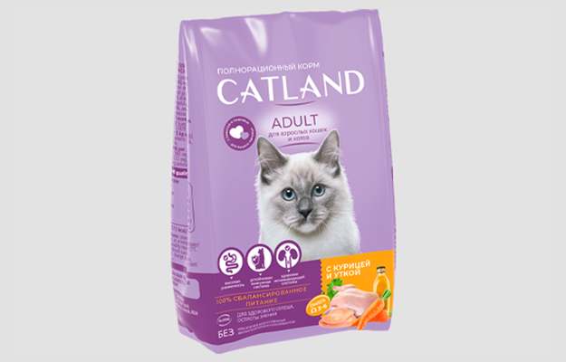 Сухой полнорационный корм «Catland» разработан для ежедневного кормления взрослых кошек всех пород. Корм полностью сбалансирован по всем питательным веществам, включая витамины и минералы, с учетом потребностей взрослых кошек.