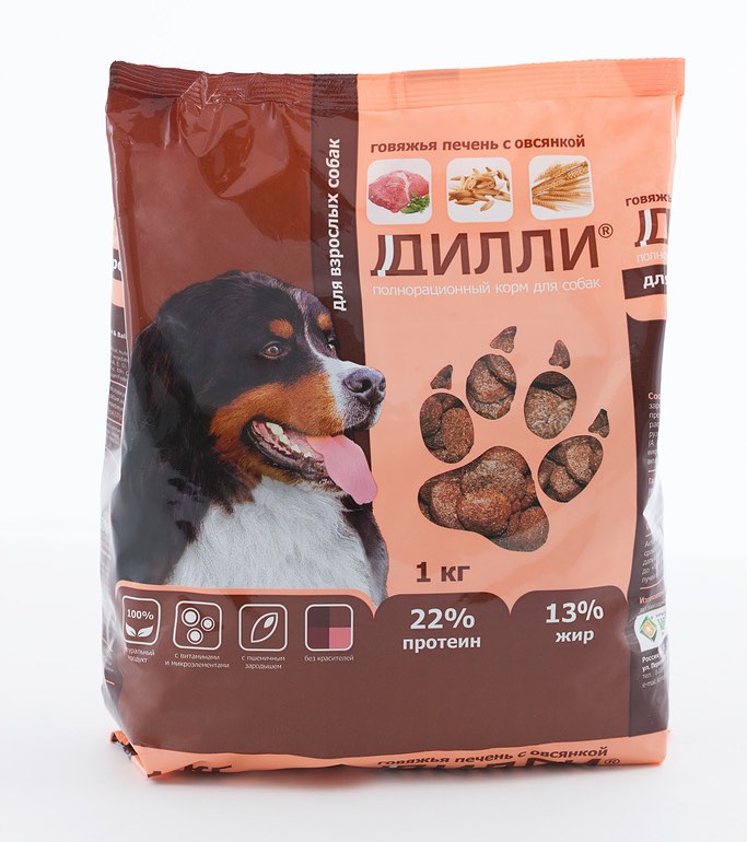 “Dilli” foods mean a well-balanced and varied diet for dogs. The ratio of proteins, fats, vitamins and microelements meets all the diet needs of growing puppies and adult dogs.