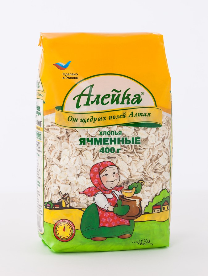 Instant barley flakes “Aleyka” are produced from the best Altai barley grains which are cleaned, steamed and beaten flat. Thus the product increases its nutrient value and digestibility. The taste gets much better and the cereals acquire the mouth-watering smell.